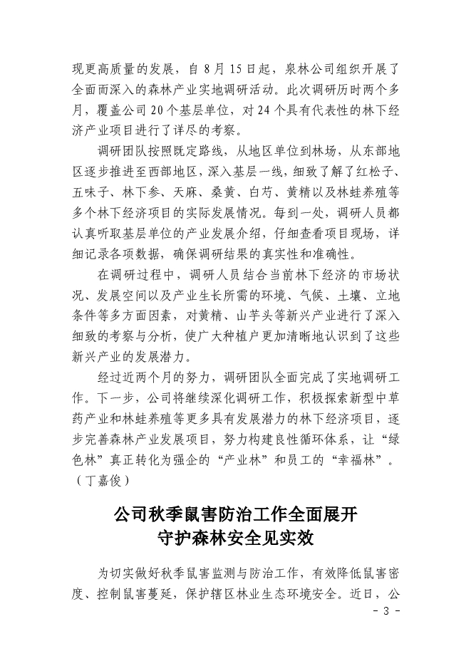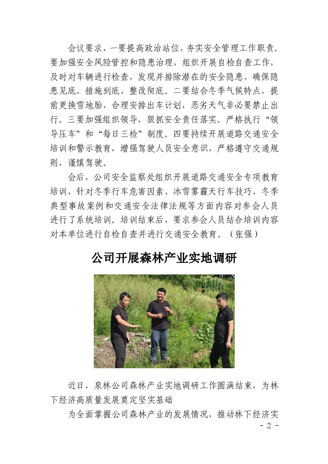 泉陽林業(yè)有限公司信息2024年第61期